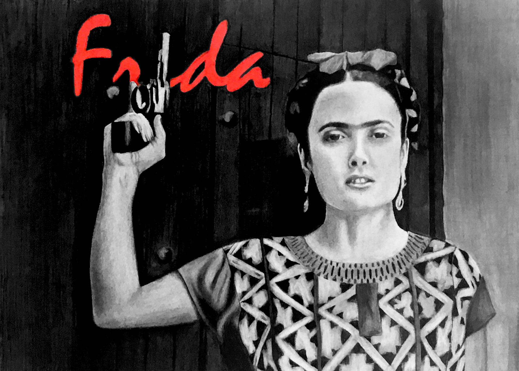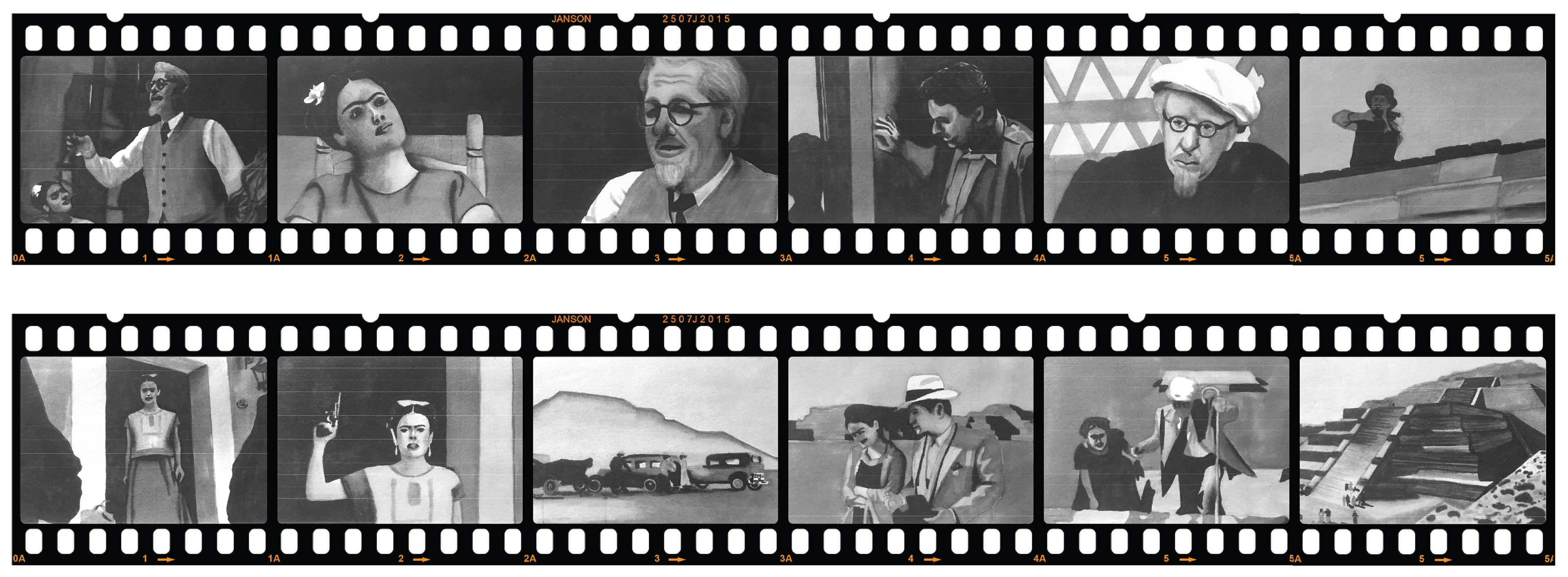 Frida is series of still drawings that I formatted into a film strip. I started off with quick sketches of stills from the movie and developed the most important scenes into more detailed marker drawings. I also used the stills as inspiration to create a final movie poster.