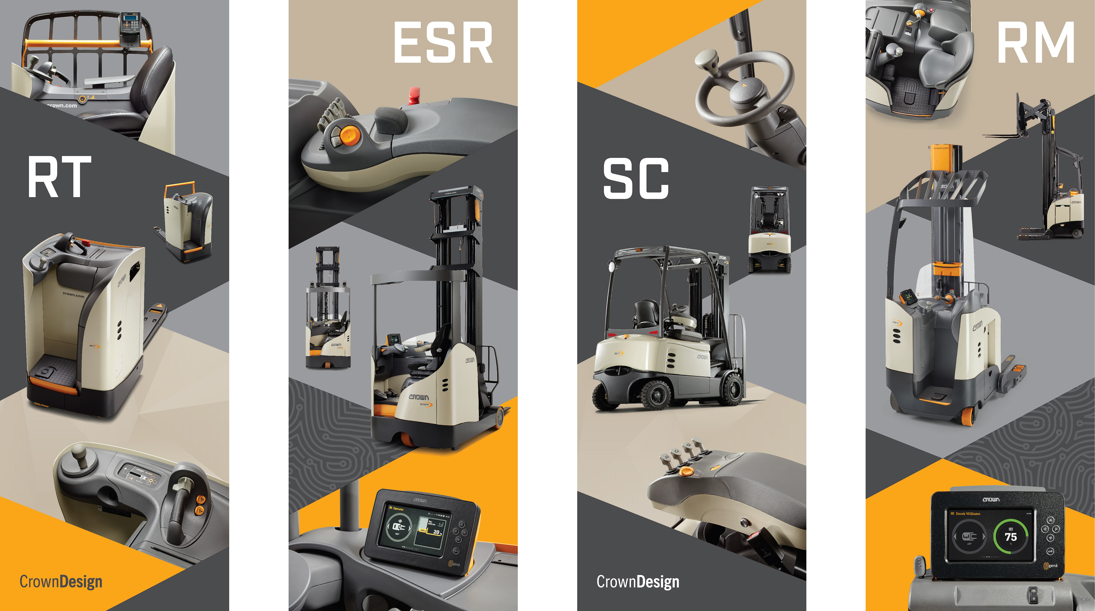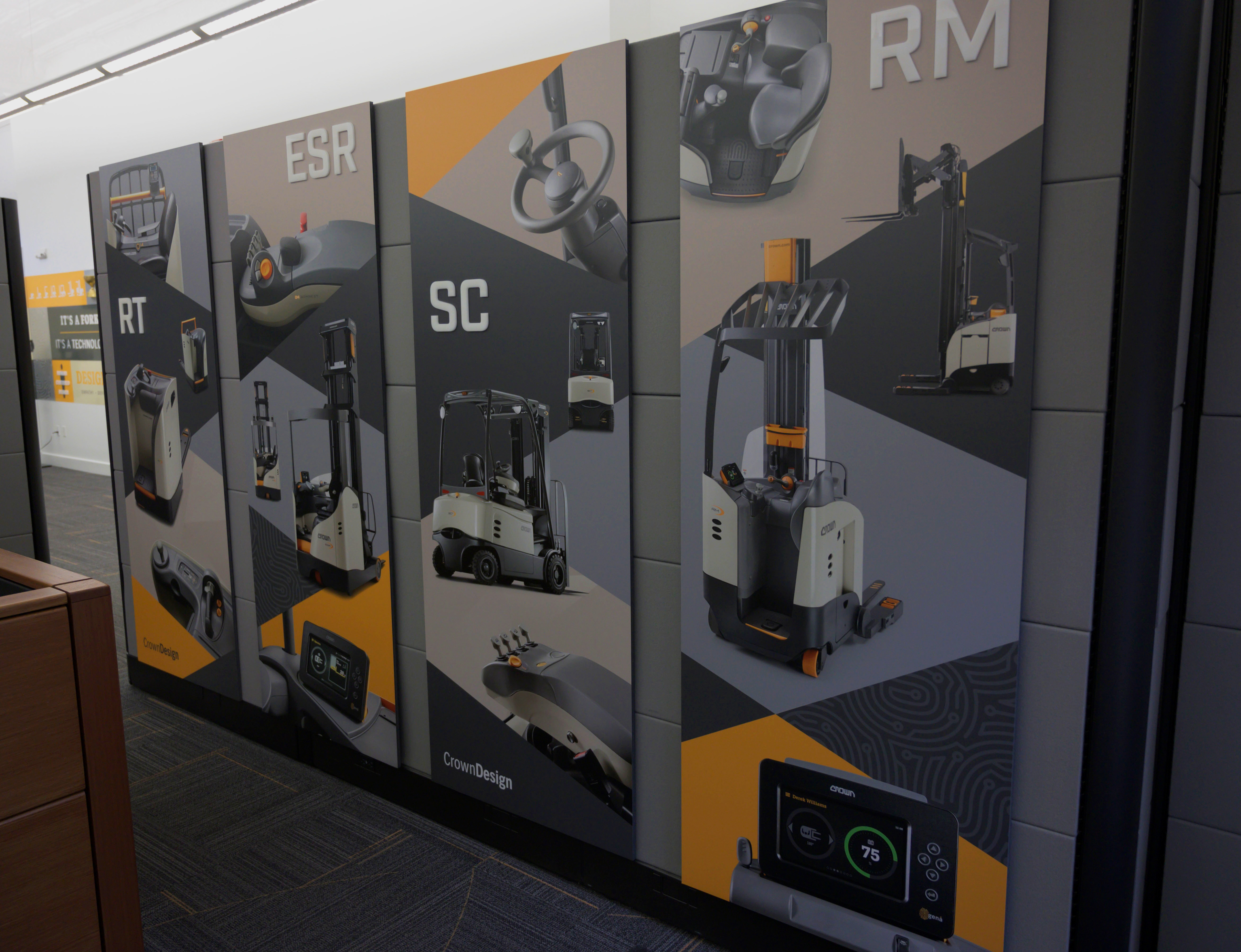 Crown Equipment has earned the reputation as a leading innovator in world-class forklift and material handling equipment. While working alongside their visual design team, I had the opportunity to design a series of posters that are now being displayed in the lobby of their design center. They wanted the posters to highlight four different lift trucks and specific industrial elements of each one. My goal was to create separate individual posters that created a single, cohesive image when put together. I played with lines, shapes, and textures to create unity while simultaneously highlighting each specific lift truck and their key features.